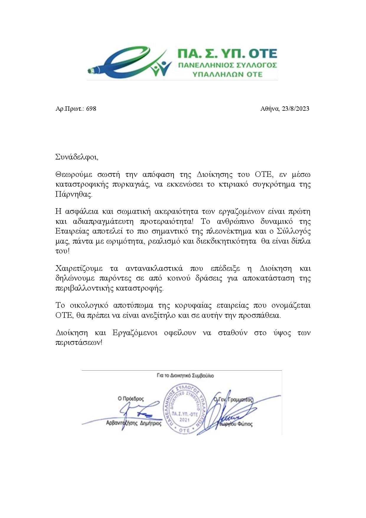 ΑΝΑΚΟΙΝΩΣΗ ΓΙΑ ΠΥΡΚΑΓΙΑ ΠΑΡΝΗΘΑΣ