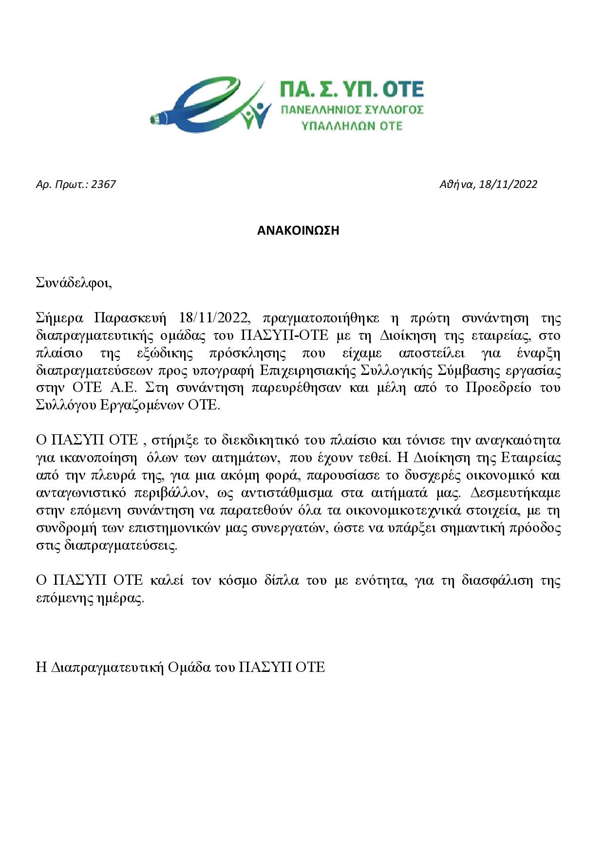 ΑΝΑΚΟΙΝΩΣΗ ΓΙΑ ΤΗΝ 1η ΣΥΝΑΝΤΗΣΗ ΜΕ ΤΗ ΔΙΟΙΚΗΣΗ