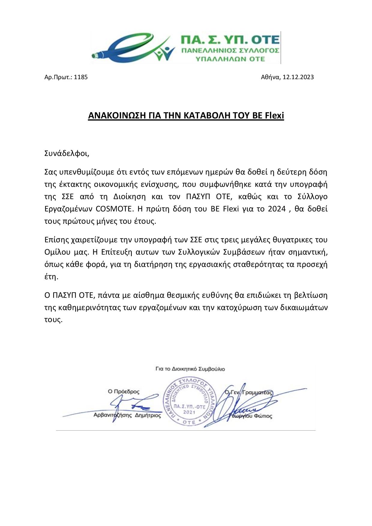 ΑΝΑΚΟΙΝΩΣΗ ΓΙΑ ΤΗΝ ΚΑΤΑΒΟΛΗ ΤΟΥ Be-Flexi