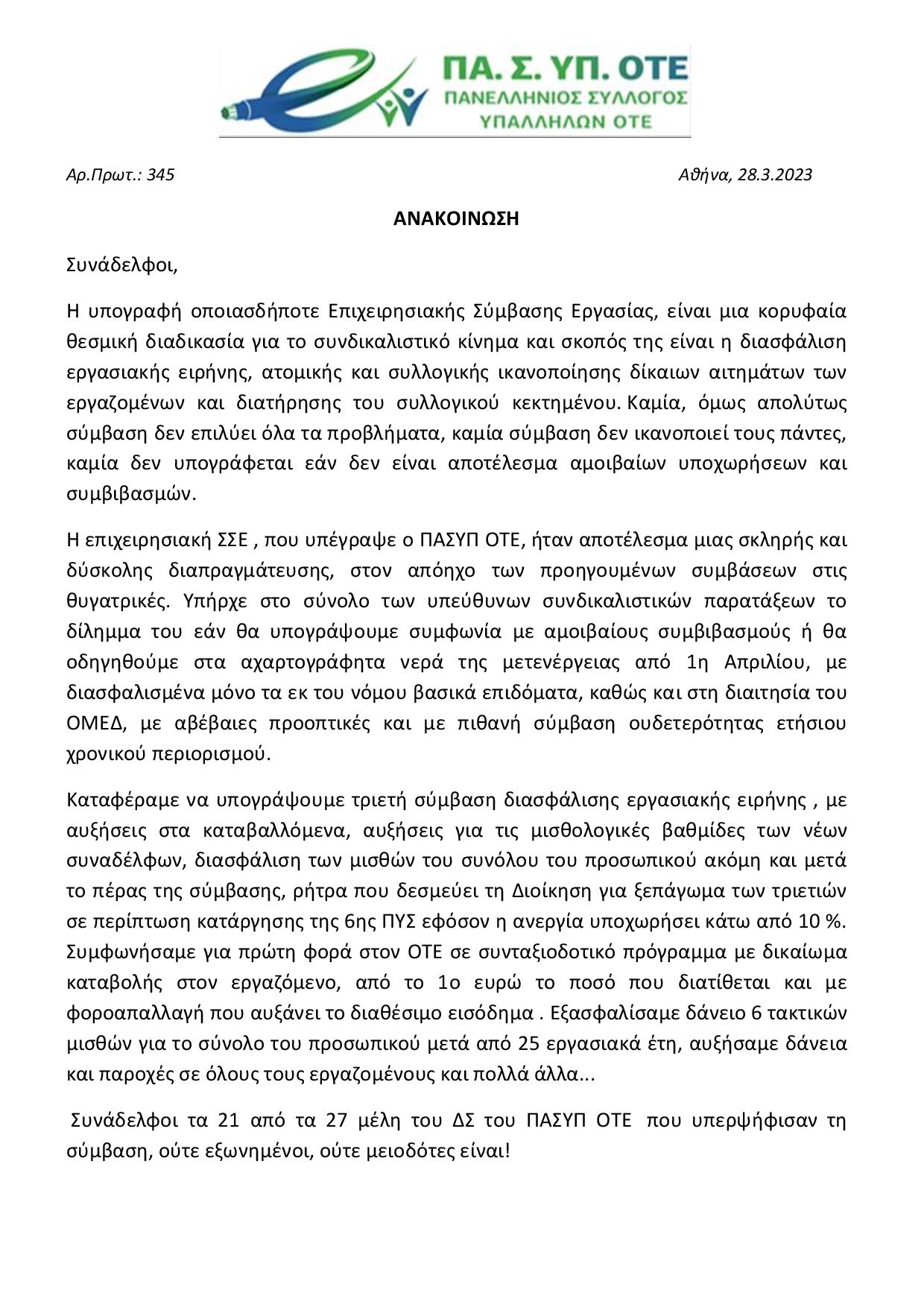 ΑΝΑΚΟΙΝΩΣΗ ΣΥΛΛΟΓΟΥ 28/03/2023