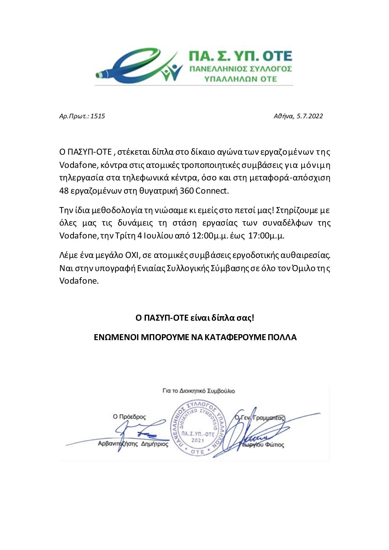 ΔΤ ΣΤΗΡΙΞΗ ΣΤΟΥΣ ΕΡΓΑΖΟΜΕΝΟΥΣ ΤΗΣ VODAFONE